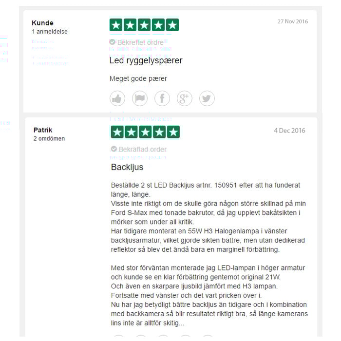 Vad andra säljer och kallar "backlampa" är vanliga diodlampor mer lämpliga för andra uppgifter.