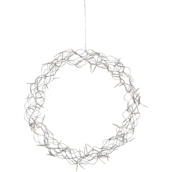 Vacker krans i silver för inomhusbruk. Kransen har 136 LED-ljuskällor med varmvitt sken. En underbar hängande dekoration att ha i hemmet.